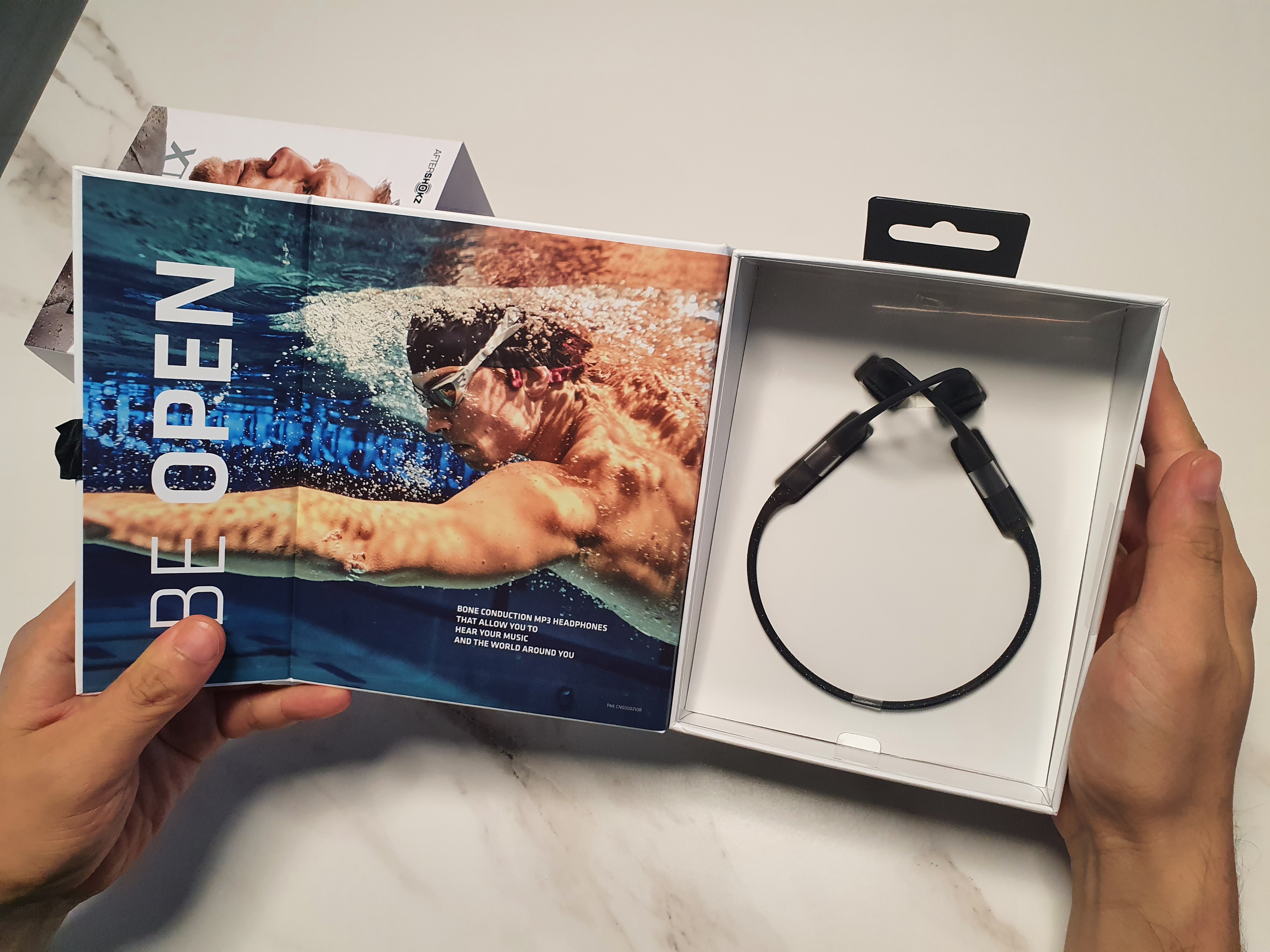 * 저는 제공된 귀마개를 사용하고 애프터 샥을 착용했는데, 물 안에서 소리가 더욱 선명하게 잘 들립니다.